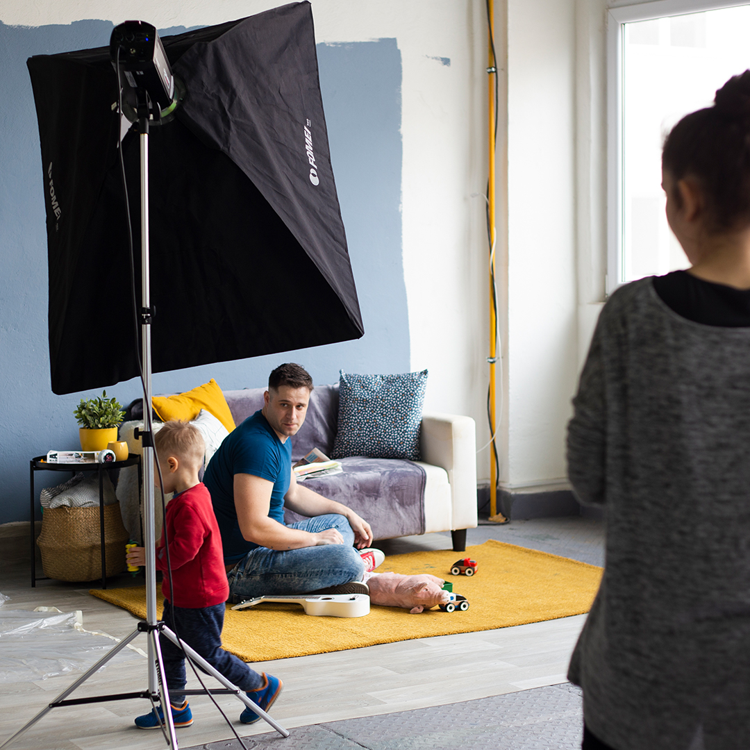 „Pro focení jsme museli najít prostor s dostatečně velkými stěnami, které nám majitel navíc dovolí vymalovat. Nakonec jsme fotili v kaskadérském studiu, takže zařídit místnost jako útulný obývák nebo „hnízdečko lásky“ stálo hodně představivosti a práce,“ upřesňuje social media specialistka Karolína Peřinová.